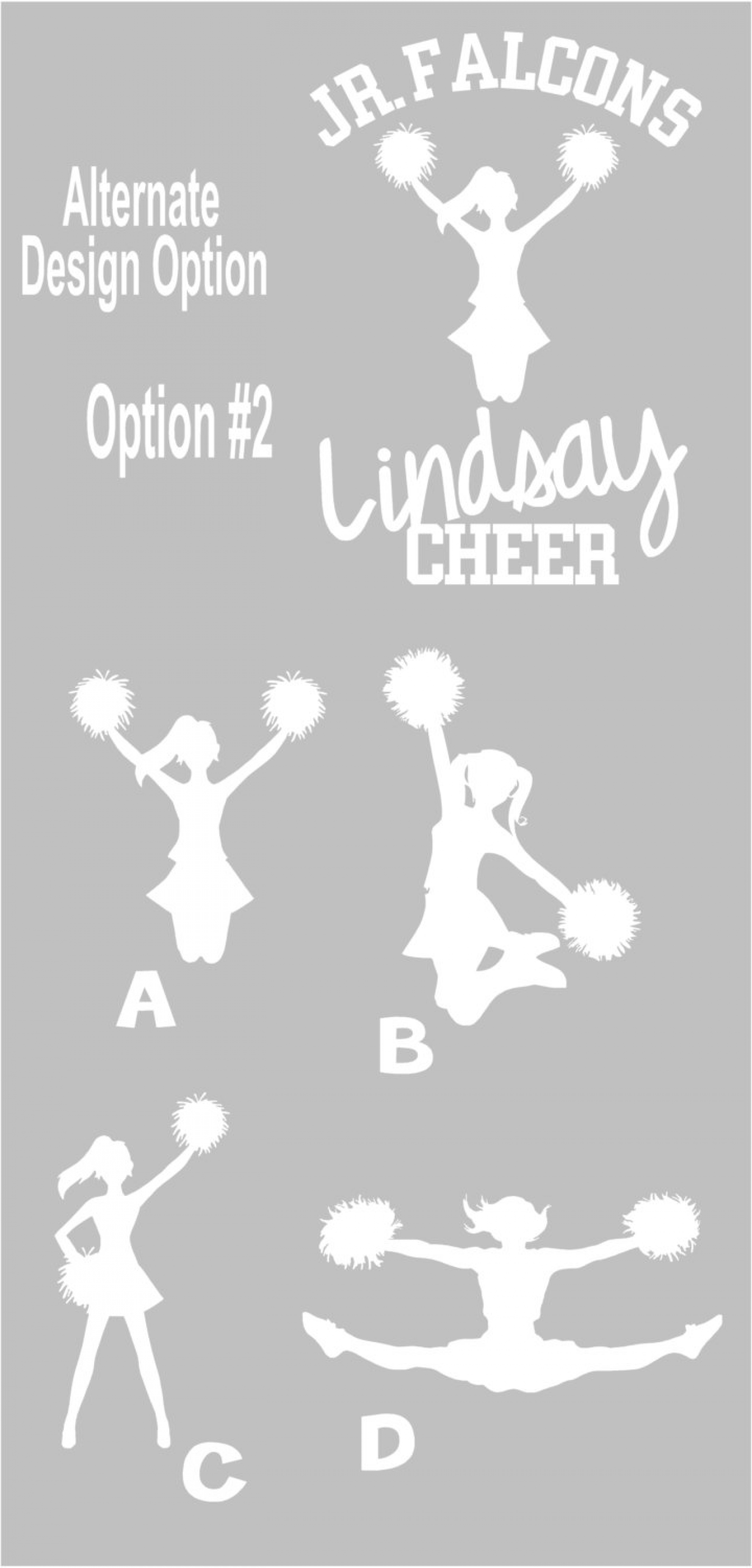 There are additional silhouette choices for the cheerleader in this sticker, if you'd like a different one than the one shown in the original listing photo simply tell me in the "notes to seller" section at check out that you would like "___" cheerleader silhouette.